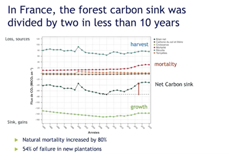 Dans la vidéo faite par le Shift Project, intitulée « Puits de carbone naturels » – rencontres académiques 2024, la troisième partie faite par Philippe Ciais, chercheur au LSCE (Laboratoire des Sciences du Climat et de l’Environnement) décrit très bien l’évolution de cette capacité des forêts en Europe dont la forêt française.